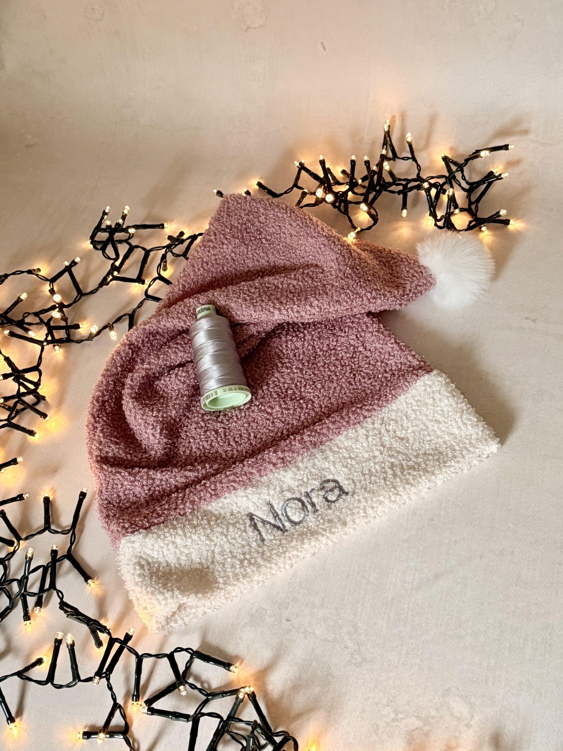 Deze gepersonaliseerde kerstmuts is speciaal ontworpen voor baby’s en kinderen en combineert de knusse uitstraling van teddy-stof met de luxe afwerking van borduurwerk.