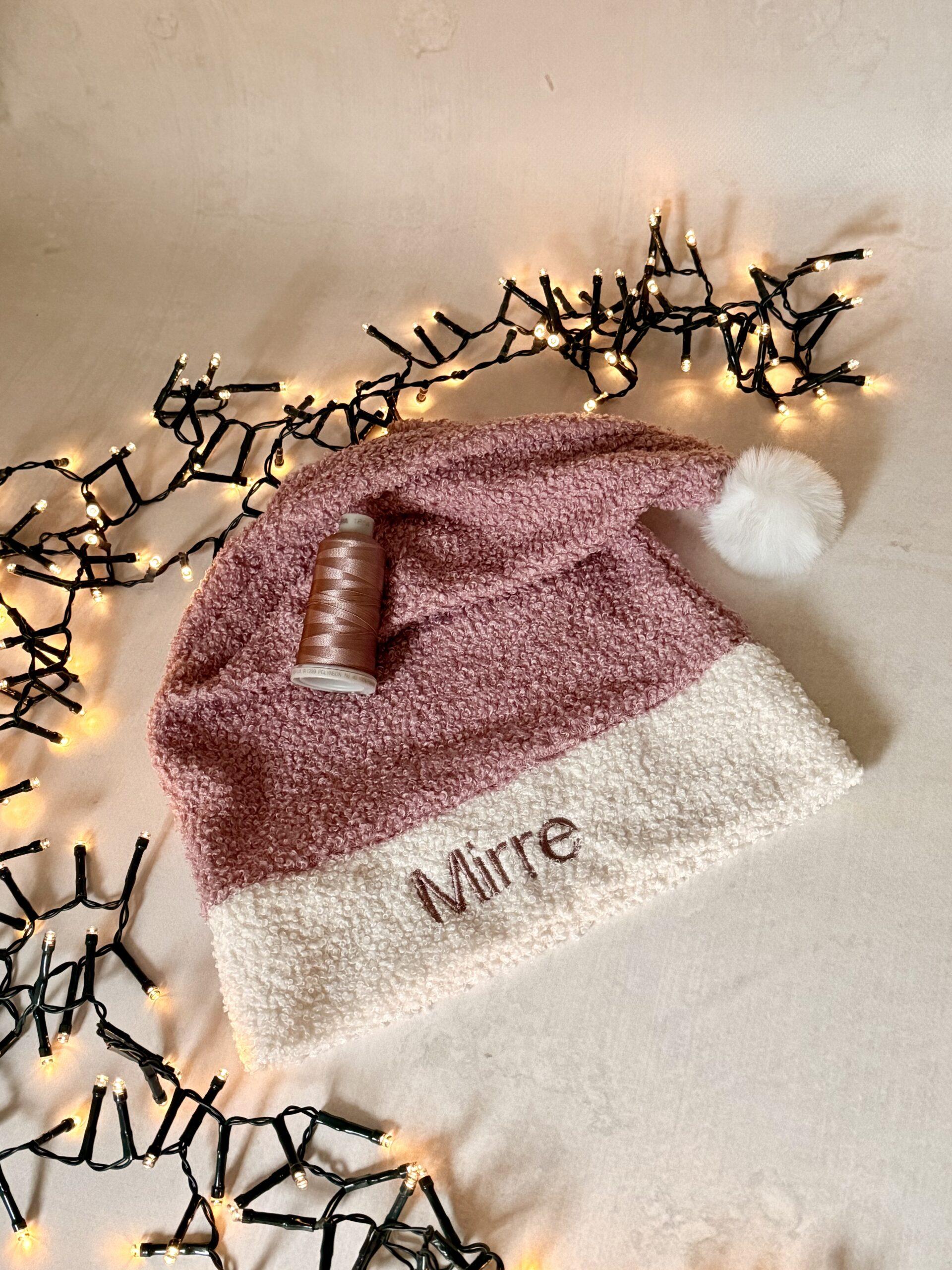 Laat dit jaar de kerstfoto’s stralen met een kerstmuts met naam oud roze die net zo uniek is als jouw kindje. 🎄✨